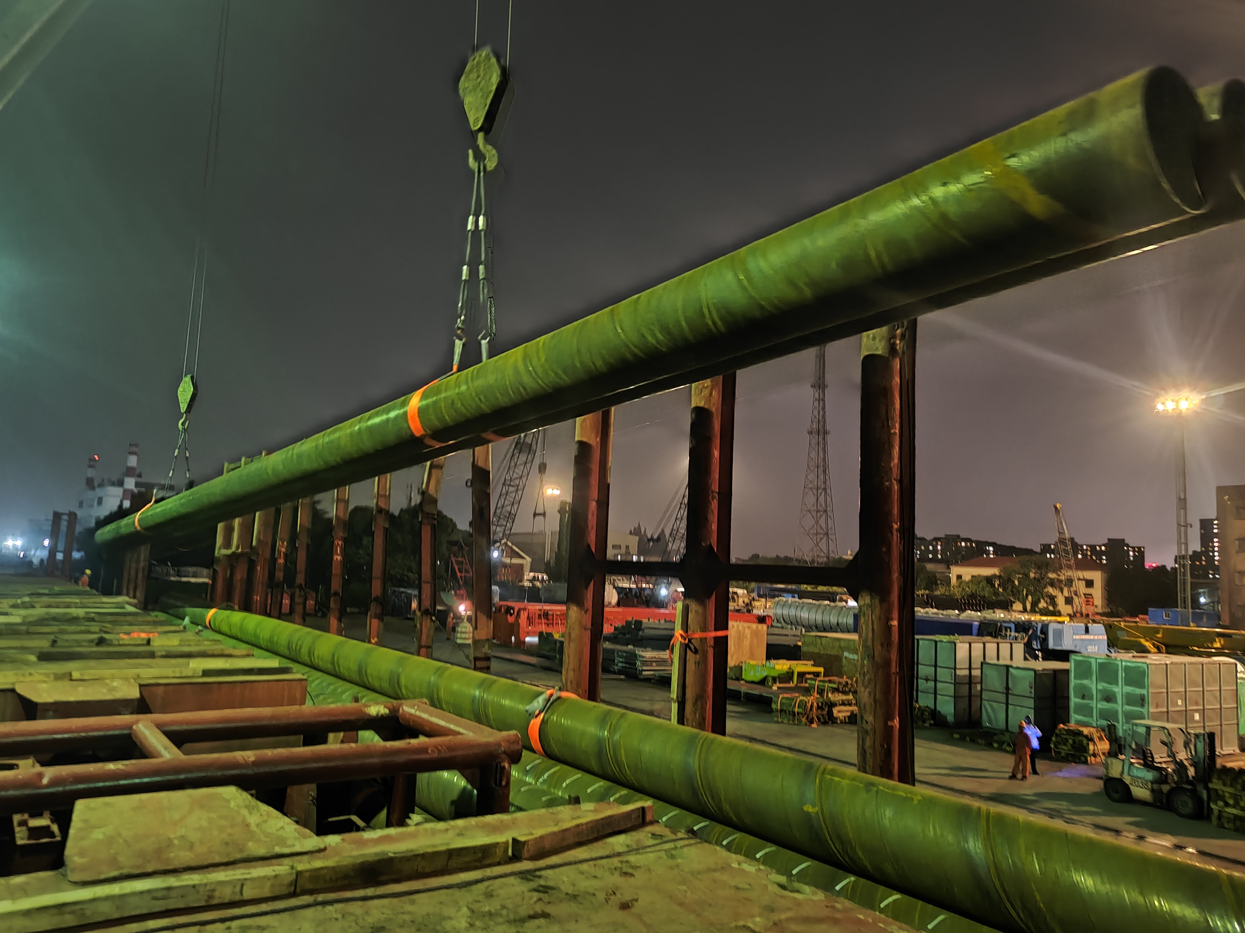 据了解,该轮计划在港装载104支超长钢管桩,单支平均重量为13.75吨,长度达46米左右,全部通过驳船走水路运输抵港。此前受迷雾封航影响,该轮较原定计划晚一潮水靠港,为不影响后续跟靠船舶,公司领导高度重视,要求以“保质量、抢船期、优服务、争效益”为目标,确保两个潮水完船并离泊。